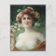 Jeune femme aux cheveux auburn et arc vert tenant un spray de jolies fleurs par Emile Vernon.