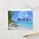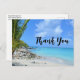 Thank You postcard with a scenic tropical photograph. A secluded beach with white sand and turquoise water.