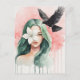 Carte Postale Beautiful Woman and Black Bird