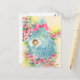 Oeuvre d'une carte vintage montrant un nouveau-né dans un panier bleu avec des fleurs roses et un arc rose