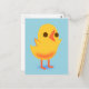 Carte Postale Bébé jaune mignon poulet sur bleu
