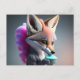 Carte Postale Bébé, mignon, dessin animé gris Fox mangeant des b