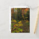 Cette carte postale vous emmènera en randonnée dans une forêt de hêtres par une journée ensoleillée d'automne. Le chemin est tellement engageant ! Les hêtres sont l'un des derniers arbres dans les bois pour changer dans leurs couleurs de feuillage d'automne. Sur cette photo, certains sont encore verts, d'autres sont devenus jaunes, et d'autres sont déjà le rougeâtre marron profond qu'ils finiront par devenir. En hiver, après que tous les autres arbres ont abandonné leurs feuilles, les hêtres se tiendront à leurs feuilles bruns secs qui se battent dans le vent.