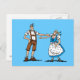 Carte postale de qualité avec un design allemand original. Un joyeux couple de BEER FESTIVAL en tenue traditionnelle Dirndl et Lederhosen. Illustration de Frank Ramspott, Munich, Allemagne.