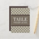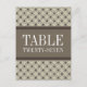 Carte postale design et chic Fancy Lattice Numéro de table avec un cercle élégant et un motif en diamant clouté sur un arrière - plan beige en mousse de marée vibrante avec une large bordure brune bicolore. Cette élégante carte de table est parfaite pour un mariage moderne. Facile à customiser, il suffit d'ajouter le ou les numéros de table appropriés dans le champ de texte fourni. Cliquez sur "Customiser" pour trouver d'autres options de personnalisation.
