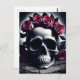 Peinture gothique foncée d'un crâne humain entourée de pétales et de roses gothiques pâles, à l'atmosphère gothique déplaisante et dénaturée, à l'atmosphère d'un autre monde, cette carte postale est parfaite pour les amateurs de crânes gothiques foncés et de fleurs et roses gothiques sombres et romantiques.