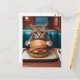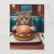 Carte Postale Belle Chat à un dîner avec un Cheeseburger