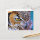 Une belle carte postale à thème nature avec un tableau d'une grande chouette à l'aspect glorieux qui semble regarder dans l'âme des porteurs avec son oeil doré mystérieux.