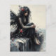 Carte Postale Belle Fée assise sur une falaise en noir