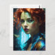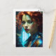 L'IA a produit l'art d'une belle femme rougeâtre portant une chemise bleu étincelante et des tatouages temporaires de lierre vert sur son visage