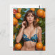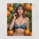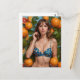 Une femme sexy dans un haut de bikini fleuri tient une peinture orange générée par l'IA