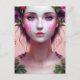 Art IA représentant une jolie fée éthérée avec des fleurs roses dans les cheveux.