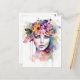 Carte Postale Belle fille d'aquarelle avec des fleurs dans ses c