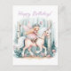 Carte postale personnalisable Belle fille fée chevauchant dans une forêt enchantée.