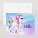 Carte Postale Belle licorne avec Rainbow Mane & Tail Bonjour