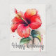 Cette carte de vœu d'anniversaire dynamique présente une belle représentation d'une fleur d'hibiscus tropical rouge. C'est un choix idéal pour les mères, les filles, les grands-mères, les amies, la famille et les collègues. #Coloré #Rétro #Vintage #Petite amie #Femme #Mère #Féminin #Joli