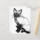 Carte Postale Belle oeuvre d'art noir et blanc - chat siamois