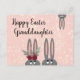 Mettez un sourire sur son visage avec cette mignonne petite-fille Bunnies Pâques Pink Floral Postcard. Il est conçu avec d'adorables lapins gris qui tombent de toutes les directions sur l'avant de la carte. Le lapin-mère a de jolies fleurs bordeaux sur sa tête. L'arrière - plan est rose vif et "Joyeuse Petite-fille de Pâques" en calligraphie brossé des lettres de script.