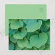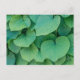 Carte postale inspirée par mon amour pour la couleur verte et le monde vert qui nous entoure. La photo montre un tapis de beaux feuilles verts. Les feuilles sont grands et en forme de coeur, avec des veines bien visibles.