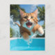 Carte Postale Belle Plongée de chat dans la piscine Amusante