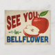 Une charmante carte postale de voyage vintage Bellflower California avec une jolie pomme rouge, avec un texte amusant de style rétro qui dit : "Voir à Bellflower"