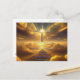 Croix dorée parmi des nuages dorés lumineux avec conception typographique.