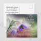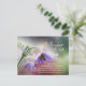 Écriture inspirée Carte postale Bénédictions de Pâques représentant des fleurs violettes avec un arrière - plan vert et rose. Il présente la Bible Verse Jean 3:16, "Car Dieu a tant aimé le monde qu'il a donné son Fils unique, afin que quiconque croit en lui ne périra pas, mais ait la vie éternelle."