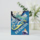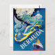 Carte postale des Bermudes. Design floral d'une belle sirène sur l'île, et d'un bateau à venir.