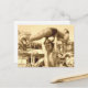 Cette carte postale présente une photo vintage de deux copains s'amusant à la plage.