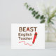 Un design de carte postale amusant avec du texte qui lit BEAST English Enseignant avec l'alphabet A croisé avec un stylo rouge pour qu'il soit lu comme BEST à la place. Le design est tellement approprié que les enseignants laissent souvent des marques rouges quand ils corrigent un morceau de travail et pour les professeurs d'anglais, ils vérifient les erreurs d'orthographe ou l'utilisation incorrecte des mots. Dans ce coque, les étudiants voulaient-ils que le mot soit bête ou meilleur ? Pour les professeurs d'anglais avec un sens de l'humour. Parfait pour la journée d'appréciation des enseignants!