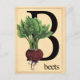Un design de carte flash de style ancien avec la lettre B et des betteraves art généré par IA