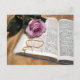 Carte Postale Bible & Rose pourpre avec Chaîne croisée