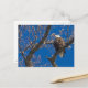 Un aigle à tête blanche surplombe son territoire depuis une branche d'un tulipe. Un ciel bleu vif complète la scène.