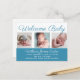Bienvenue bébé. Une carte postale classique pour bébé en bleu cérusé avec une belle typographie cursive au-dessus de votre collage photo de nouveau-né.
