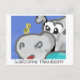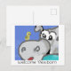 Le nouveau monde autour de moi ! Une carte postale de canard et hippo pour accueillir un nouveau-né.
