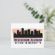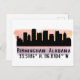 Carte postale : silhouette de la ligne d'horizon de Birmingham AL avec coordonnées de latitude et de longitude sur un arrière - plan de l'aquarelle,