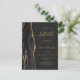 The left-hand edge of this elegant modern 50th anniversary party invitation features a black watercolor agate border trimmed with faux gold glitter. The customizable text combines gold-colored handwriting, copperplate and italic fonts on an off-black background.