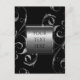 Carte Postale Black & Faux Silver Glass Floral Swirl Élégant