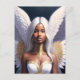 Belle fille ange à la peau foncée avec ailes dorées et blanches et cheveux blancs vêtus d'une robe blanche avec des accessoires en or représentant un être céleste chrétien. Cette jolie pièce d'art d'ange noir est un tableau numérique de style portrait, style classique de peinture à l'huile.