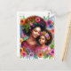 This vibrant Black mother and daughter floral portrait postcard features a loving mother and her young daughter, both wearing beautiful natural afros adorned with colorful flowers and botanical accents. Their gentle expressions and warm connection capture a tender moment of love, pride, and family bond.