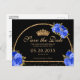 Carte Postale Black Royal Blue Gold Parties scintillant Floral Q