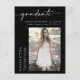 Yay ! Elle a finalement obtenu son diplôme d'études secondaires, collégiales/universitaires, technologiques ou un programme d'études supérieures. Il est donc temps d'informer sa famille et ses amis qu'elle l'a fait ! Célébrez l'un des moments précieux de sa vie et envoyez cette carte postale de faire-part de remise de diplômes. Cette carte postale présente une élégante faire-part de graduation minimaliste moderne avec un magnifique script de calligraphie sur un arrière - plan noir et la photo du diplômé. Il suffit de customiser et de remplacer le texte et la photo dans la zone de personnalisation. Veuillez noter : L'élégante calligraphie brush phrase de texte "diplômée" et "elle l'a fait" avec coeur avec les lignes et d'autres illustrations graphiques et éléments ne peut pas être modifié, supprimé, ou déplacé. Elles sont réparées.