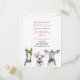 Ta petite fille en tourne un ! Invitation vos invités spéciaux avec cette adorable carte postale d'invitation avec des animaux de ferme dessinés à la main (un cheval, un cochon, une vache et un poussin) en noir et blanc. Le nom du bébé, le "premier anniversaire" et la date sont en écriture manuscrite rose, et personnalisées dans un chic moderne noir sans serif. Copyright Invitations élégants, tous droits réservés.