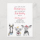 Ton petit en tourne un ! Invitation vos invités spéciaux avec cette adorable carte postale d'invitation avec des animaux de ferme dessinés à la main (un cheval, un cochon, une vache et un poussin) en noir et blanc. Le nom du bébé, le "premier anniversaire" et la date sont en typographie de script en lettres rouges et personnalisées dans un noir moderne chic sans serif. Copyright Invitations élégants, tous droits réservés.