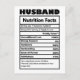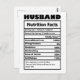 Carte postale avec des blagues sur les faits nutritionnels du mari