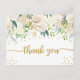 Jolie végétation fleurie blanche avec faux confetti d'or merci carte postale appropriée pour mariage, baby shower, fête d'anniversaire, etc.