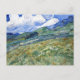 Carte postale d'art de la peinture post-impressionniste, Blé Fields in a Mountainous Landscape (1889), de l'artiste néerlandais Vincent van Gogh (1853-1890). Champs verts à flanc de montagne avec un ciel bleu nuageux, peint à Saint-Remy-Blanzy, France.