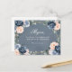 Dusty bleu floral géométrique vous serez ma carte postale de demoiselle d'honneur avec d'élégants bouquets de marine / Dusty bleu, blanc, rougissant, rose pêche et sauge vert eucalyptus feuilles et élégant cadre géométrique neutre parties scintillant. Veuillez me contacter pour toute aide sur la personnalisation ou si vous avez besoin d'un autre produit avec ce design.