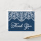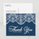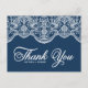 Carte Postale Bleu Élégant Broderie Botanique Dentelle Remerciem