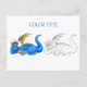 Carte Postale Bleu et Jaune Rire Dragon Activité Coloriage